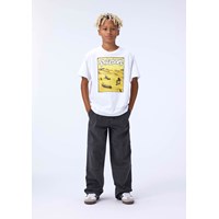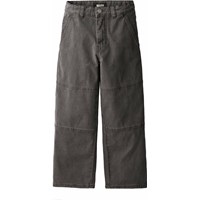 Grå kanvasbukser i bomuld med inspiration fra skatermiljøet. Bukserne har en løs pasform med brede ben og markante syninger ved knæene, der tilføjer karakter. Designet inkluderer fem praktiske lommer og en gylp med lynlås.