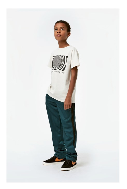 Almo er et par mørkegrønne track bukser med sorte striber på siderne. Bukserne har elastisk talje, samt lynlåslommer i siderne.