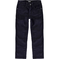 Alon er et par mørkeblå fløjlsjeans i et regulært fit med en behagelig og flot pasform. Bemærk, at størrelserne til og med 134 har trykknap og ikke almindelig jeansknap.