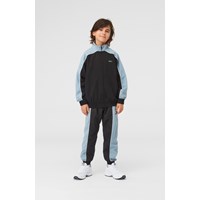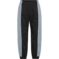 Alyxo er et par sorte trackbukser med lyseblå og en tynd hvind piping. Bukserne har en bred elastisk talje og benafslutning, samt lynlås lommer i siderne. Kombiner bukserne med matchende track jakke for et sporty og cool look.