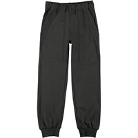 Ame er et par afslappede bukser i sort med elastisk talje og ben afslutning. Bukserne har store lommer på fronten.