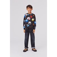 Andy er et par mørke denim jeans i et afsleppet fit med en behagelig og cool pasform. Buksernes livvidde kan justeres med en indvendig justerbar elastik, så de passer perfekt til alle børn. Bemærk, at størrelserne til og med 134 har trykknap og ikke almindelig jeansknap.