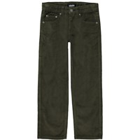Mørkegrønne bukser i riflet fløjl. Disse jeans er fremstillet i bomuld med stretch, så de er behagelige at have på. De har lommer i siderne, baglommer, samt et regulært fit. Buksernes livvidde kan justeres med en indvendig justerbar elastik, så de passer perfekt til alle børn. Str.92-134 har trykknap, så bukserne er nemme at få af og på - str.140-176 har regulær jeansknap.