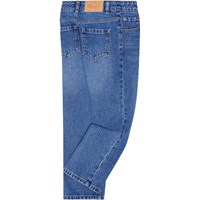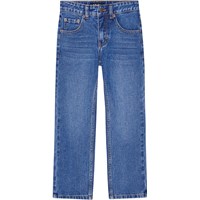 Blå jeans med lige ben, fremstillet i en blød og slidstærk bomuldsblanding. Disse jeans har lommer i siderne, baglommer, samt en almindelig pasform. Buksernes livvidde kan justeres med en indvendig justerbar elastik, så de passer perfekt til alle børn. Str.92-134 har trykknap, så bukserne er nemme at få af og på - str.140-176 har regulær jeansknap.
