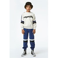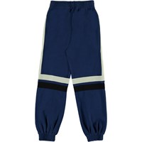 Anoua er et par blå sweatpants med hvide og mørkeblå striber. Bukserne har elastisk talje, samt ben afslutninger.
