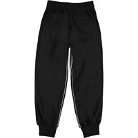 Antoo er et par sorte trackpants med hvid stribe på indersiden af benene. Antoo har elastisk talje, samt ribkant ved ben afslutningen.