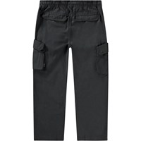 Mørkegrå cargobukser i økologisk bomuld med elastisk talje, indvendigt bindebånd og almindelig pasform. Bukserne har baglommer, sidelommer og en lomme på hvert lår.