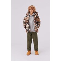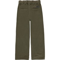Aron er Molo's nye bukser her i army grøn. Bukserne har en afslappet og bred parform og en elastisk talje. Aron har store påsyede front lommer.