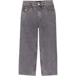 Grå jeans med peacetegn på lommen, fremstillet i en blød og slidstærk bomuldskvalitet. Disse jeans har lommer i siderne, baglommer, samt et oversize fit. Buksernes livvidde kan justeres med en indvendig justerbar elastik, så de passer perfekt til alle børn. Str.92-134 har trykknap, så bukserne er nemme at få af og på - str.140-176 har regulær jeansknap.