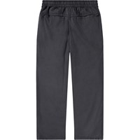 Mørkegrå bukser, fremstillet i økologisk bomuld. Disse bukser har lommer i siderne, baglommer, en elastisk talje med indvendigt bindebånd, som gør at de sidder godt hele dagen og er behagelige at have på. Aster har en almindelig pasform