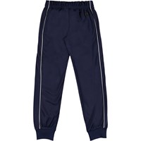 Aubin er et bar mørkeblå trackpants med hvid piping. Aubin har elastisk talje, samt ribkant ved ben afslutningen.
