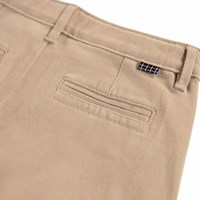 Beige bukser i let bomuldstwill, designet med bæltestropper, gylp og praktiske lommer.