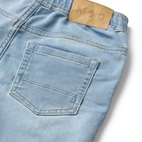Augustino er et par blå, elastiske denim bukser med et regulært fit. Augustino har en afslappet og behagelig pasform. Bukserne har en elastisk talje med bindebånd i livet, som gør det nemt at justere bukserne. Augustino er et godt alternativ til børnene, som elsker at gå i sweatpants dagen lang.