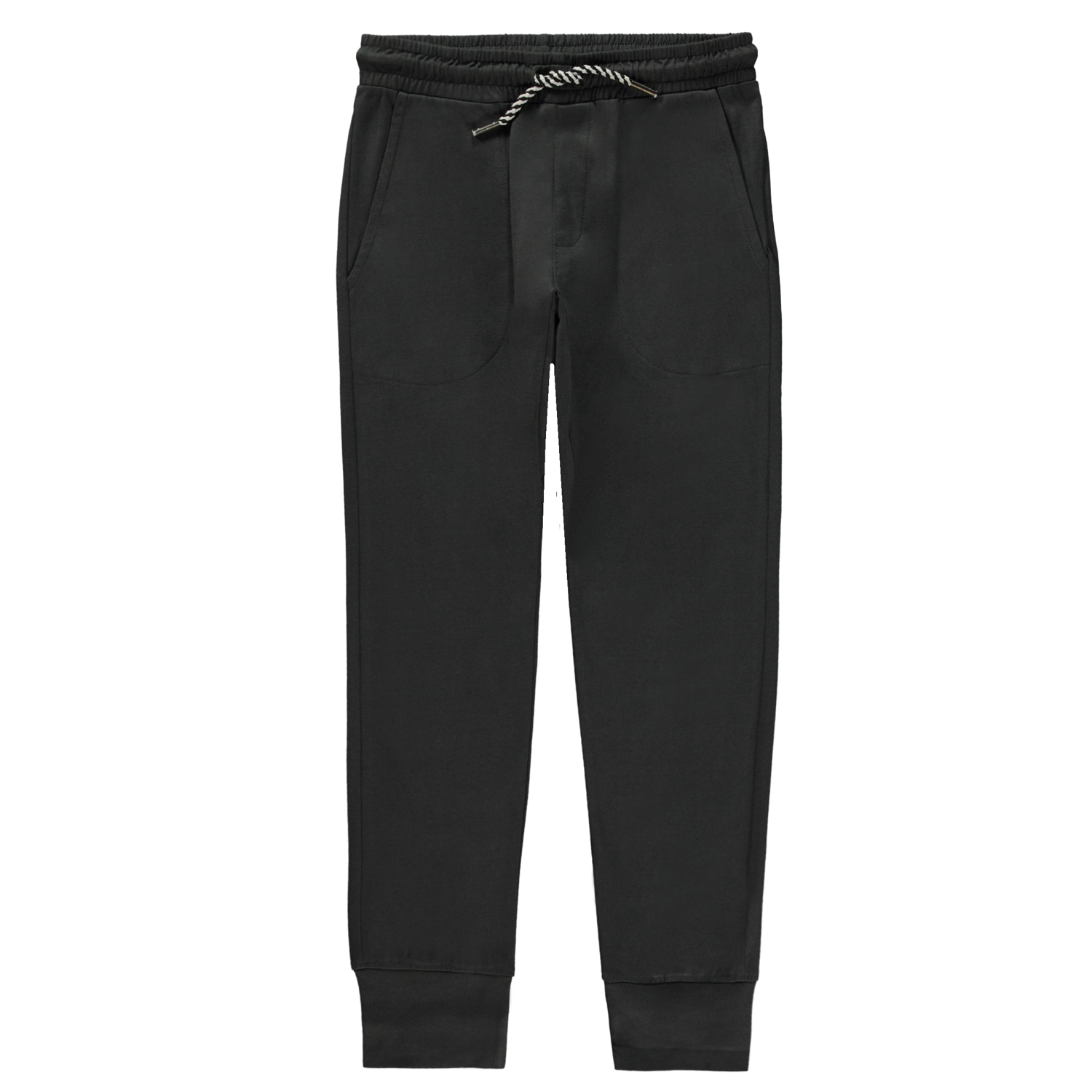 Avant er et par mørkegrå, behagelige sweatpants i bomuld. Avant har elastisk talje og bindebånd i livet, samt lommer i begge sider og brede ribkanter ved anklerne.