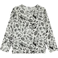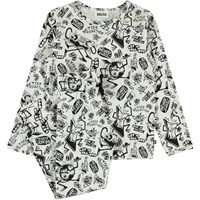 Drømmer du også om musik, så er dette sæt nattøj med sjove musikalske tegninger det helt rigtige. Luve er et to delt nattøjssæt med. Bukserne har bindebånd i livet og blusen har lange ærmer.