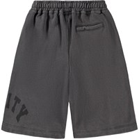Bløde shorts i mørkegrå med printdetalje, lavet i økologisk bomuld. Shortsene har en løs pasform og går til omkring knæet. Med sidelommer, baglomme samt elastik og bindebånd i taljen – behagelige og nemme at bevæge sig i.
