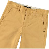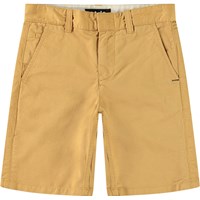 Klassiske, lysebrune chino shorts i bomuld. Disse shorts har bæltestropper, lommer i siden, en enkelt baglomme, samt en almindelig pasform. Livvidden på disse shorts kan justeres med en indvendig justerbar elastik, så de passer perfekt til alle børn. Str.92-134 har trykknap, så bukserne er nemme at få af og på - str.140-176 har regulær jeans knap.