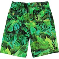 Allwin er et par grønne bomulds shorts med jungle print. Shortsene har elastisk talje med bindebånd. Certificeret af Ecocert Greenlife, certifikationsnr. 197496.
