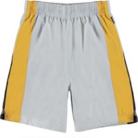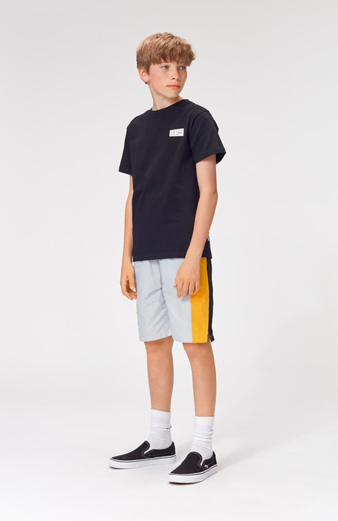 Ardor er et par grå shorts, med brede striber i gul og sort i begge sider. Ardor har elastik i taljen.
