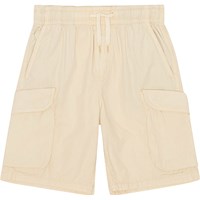 Sandfarvede, knælange cargoshorts i blødt bomuld. Disse shorts har en bred elastisk talje med bindebånd, lommer i siderne og bagtil, cargolommer på lårene, samt en løs pasform.