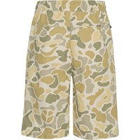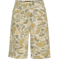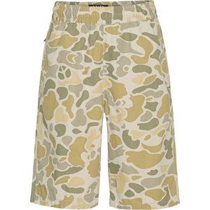 Arrow er et par knælange shorts med sandfarvet camouflage print, som gemmer på små peacetegn. Arrow har elastik i taljen og lommer i siden.