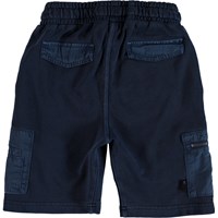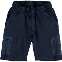 Arturo er et par blå cargo inspireret sweat shorts med påsatte lommer med lynlås, som giver kontrast. Attilas har elastisk talje med bredt bindebånd.