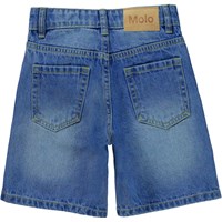Blå, knælange denimshorts, fremstillet i en slidstærk bomuld/polyester/viskose blanding. Disse shorts har lommer i siden, baglommer, samt en almindelig pasform.