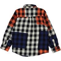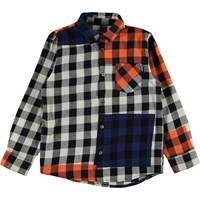 Raft er Molo's nye seje skjorte i tern med asymetriske farveflader i orange og blå. Skjorten har en klassisk krave, samt brystlomme.