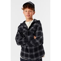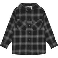 Sort og gråternet overskjorte i bomuld med hætte, lange ærmer, grå knapper, to brystlommer og en almindelig pasform.