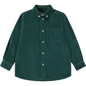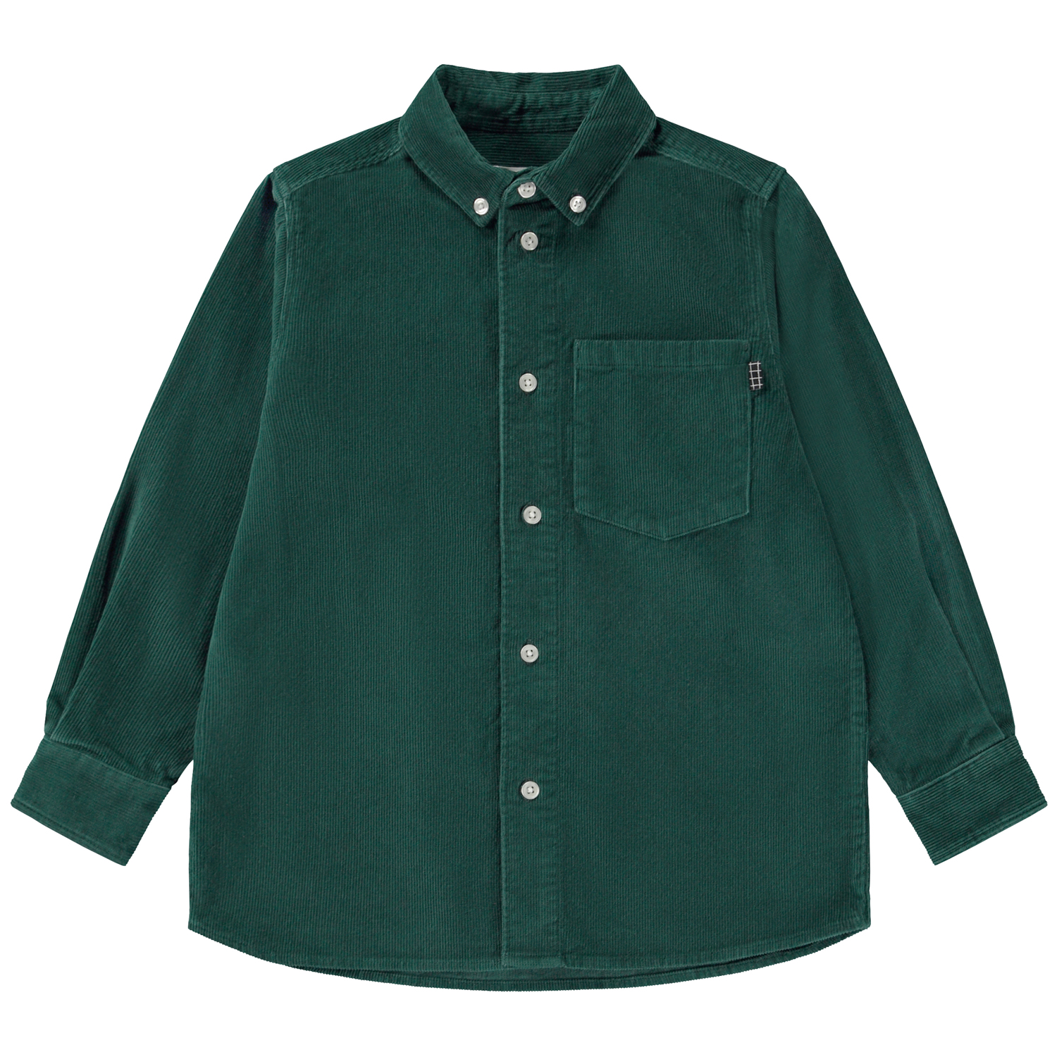 Mørkegrøn skjorte i riflet fløjl med lange ærmer. Denne skjorte er fremstillet i 100% bomuld, har krave med button down, en brystlomme, hvide knapper, samt et læg på ryggen, der giver etr løsere fit. Brug den alene eller som en overshirt, stående åben udover en t-shirt, for et cool og afslappet look.