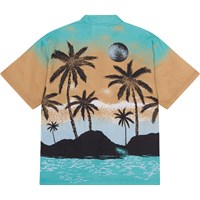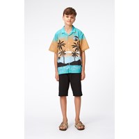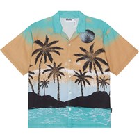 Kortærmet skjorte med placementprint i økologisk bomuld. Printet er et klassisk Hawaiimotiv, i sort og turkise farver, samt sandfarvede toner, med palmer foran en solnedgang. Denne skjorte har korte ærmer, knaplukning ned langs fronten, samt en almindelig pasform. For et ekstra cool look, kombinér evt. med matchende shorts, Adi, i samme print.