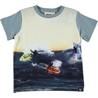 Lange lyse sommer aftener, hvor alt er lidt sjovere og farverne lidt flottere, hvilket printet "Night Surf er et eksempel på, som Raddix t-shirten er dekorerert med.