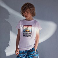 Rafe er en hvid t-shirt med retro 'California' print på fronten. T-shirten er i 100% bomuld med opsmøgede ærmer.