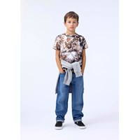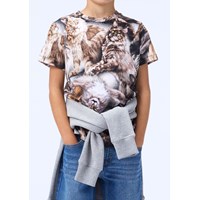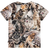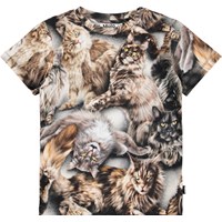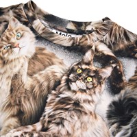 Slim fit t-shirt i blødt økologisk bomuld med ribkant i halsen. T-shirten har et allover brunt katteprint.