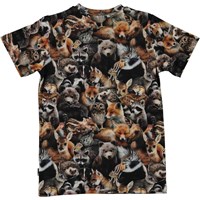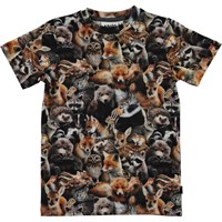 Ralphie er en t-shirt med all-over print af skovens dyr samlet. Kan du finde bjørnene og pindsvinene eller måske et dyr, som du ikke kender? T-shirten har en rund halsudskæring.
