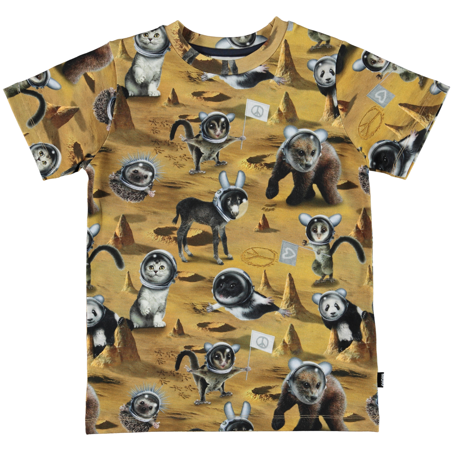Ralphie er en t-shirt med print af forskllige dyr, som er kommet på tur i rummet.