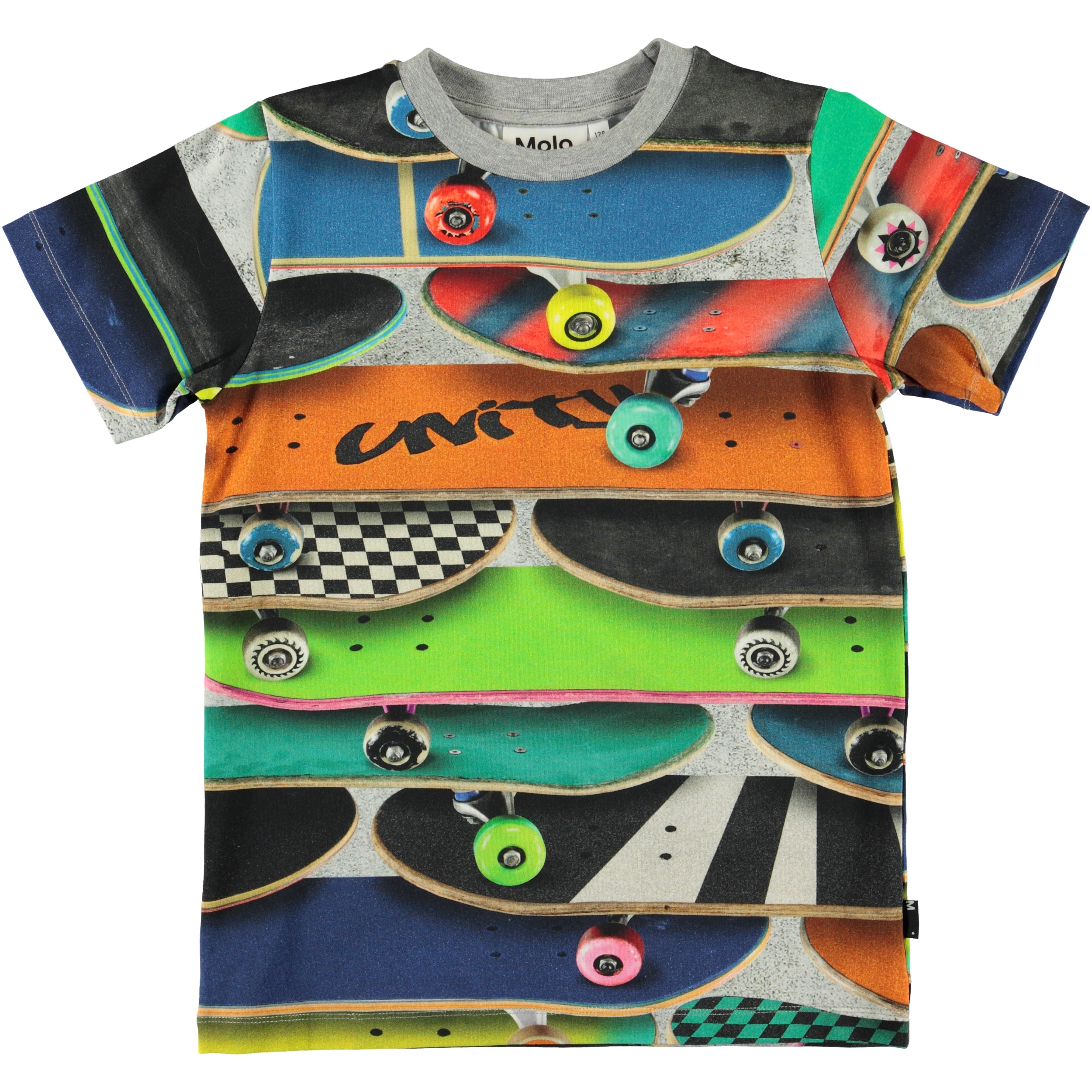 Ralphie er en t-shirt med det farverige all-over print 'Skateboards'.