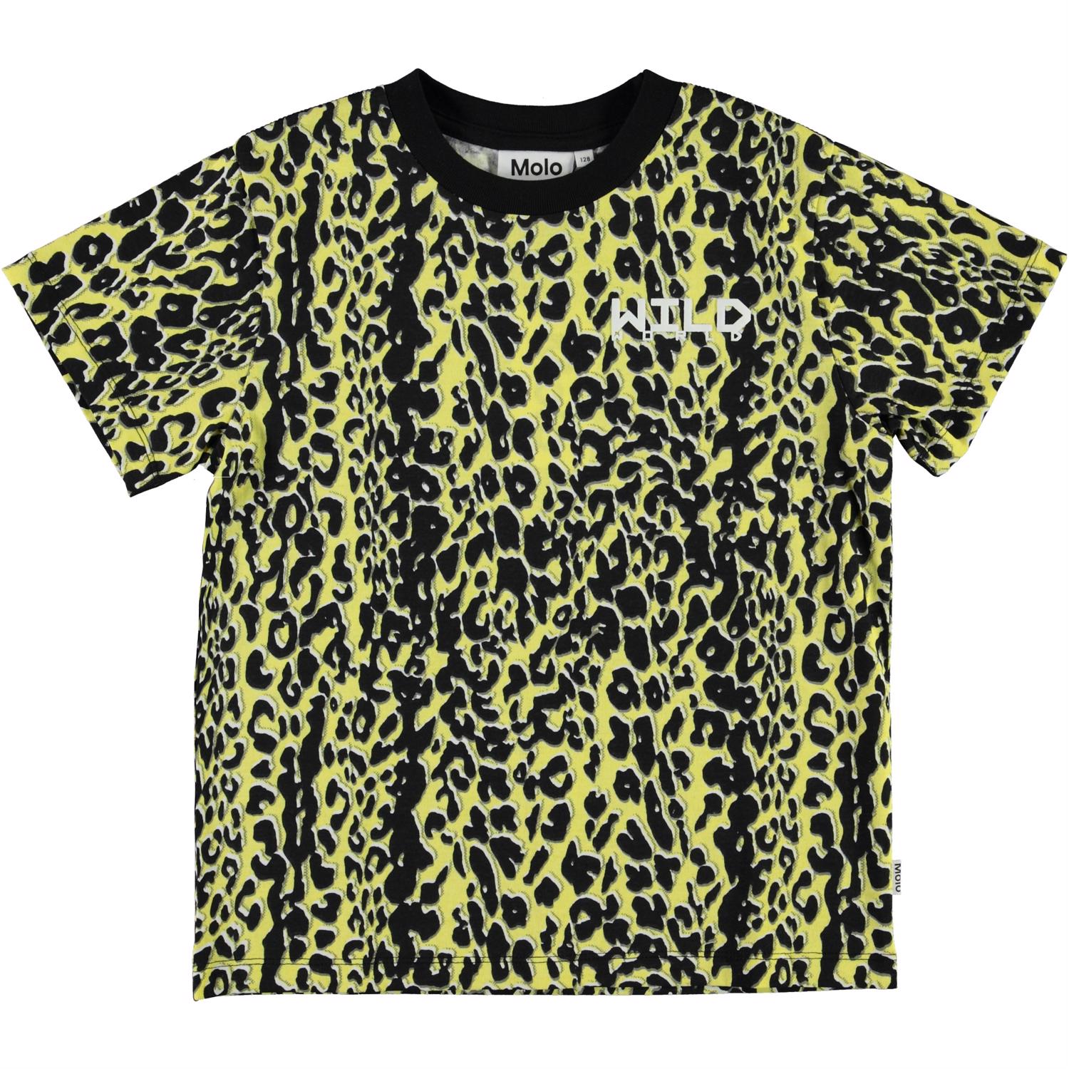 Rame er en leopard mønstret t-shirt i gul og sort, samt teksten 'Wild world' på det ene bryst.