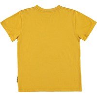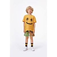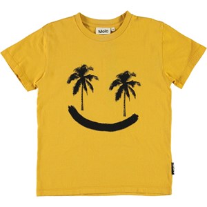 Rame er en senneps gul t-shirt med print af en smiley, hvor to palmer udgør øjnene.