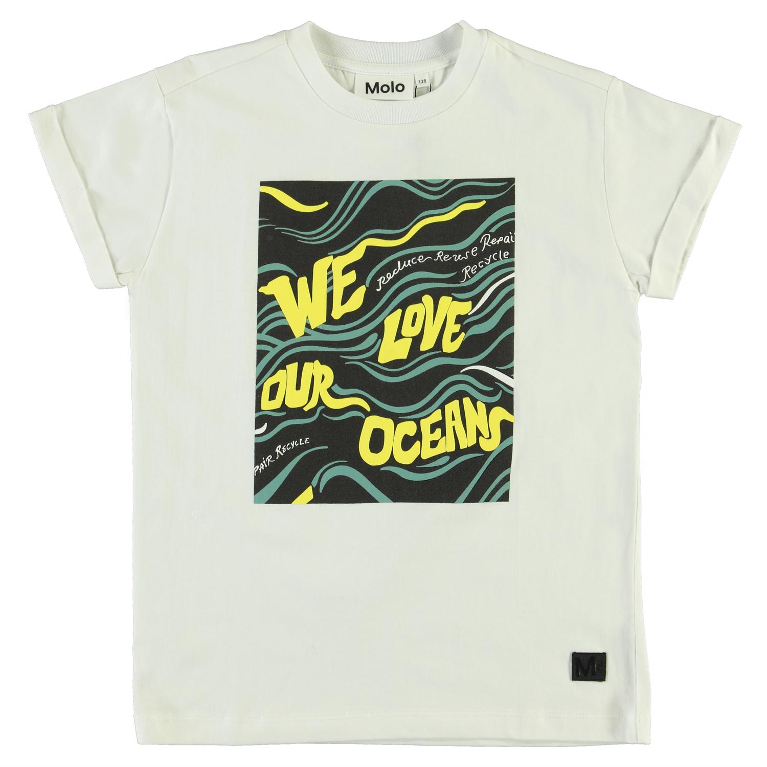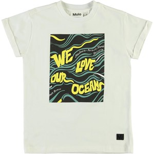 Randon er en hvid t-shirt med tekst printet 'We love our ocean' på fronten. T-shirten er i 100% bomuld og har opsmøgede ærmer. T-shirte.