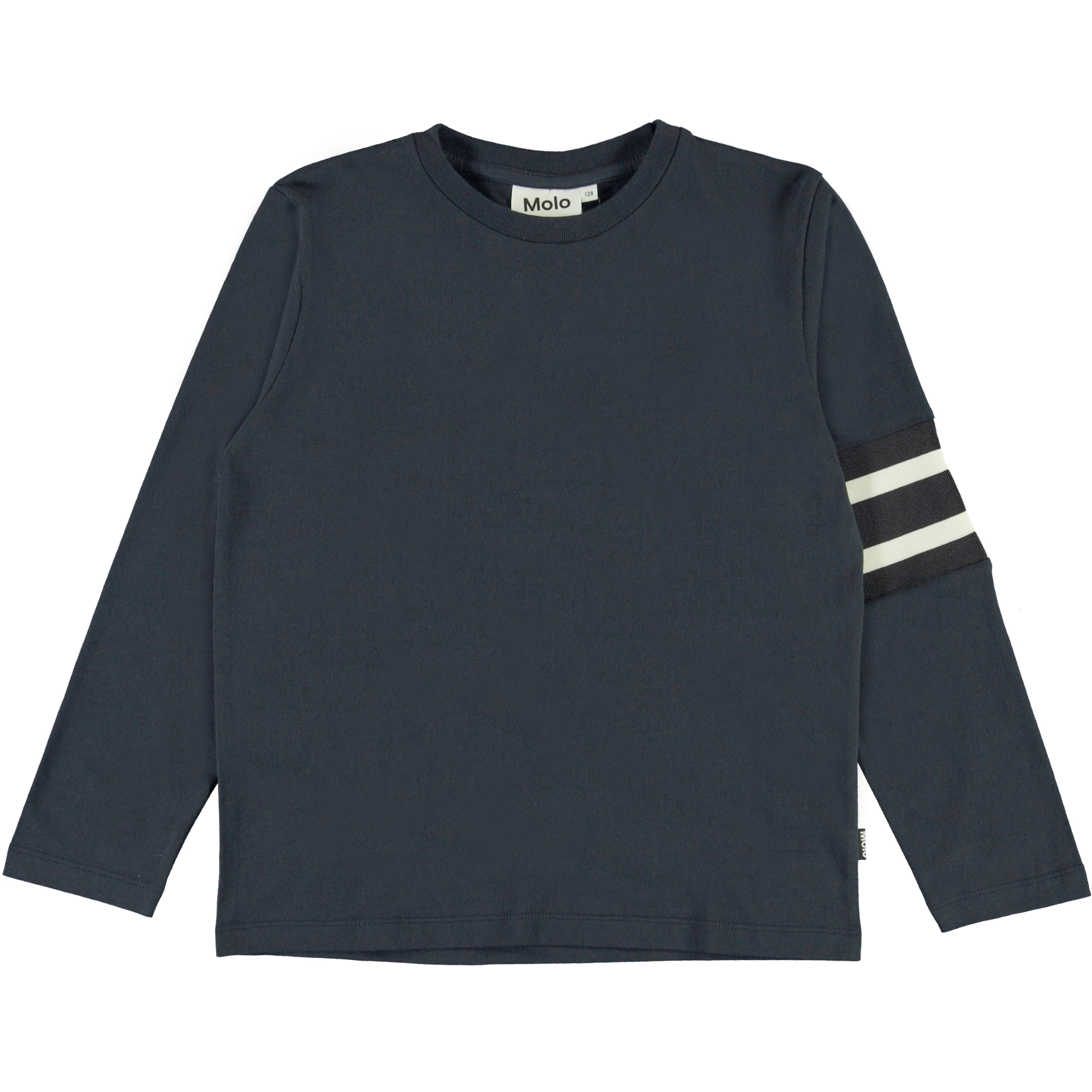 Ras er en blå langærmet t-shirt med striber på det ene ærme.