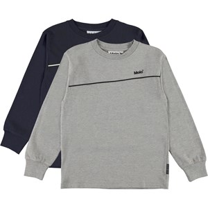 Rasmono er Molo's nye uundværlige basic bluse med lange ærmer. Her i en 2-pack med en blå og grå bluse. Bluserne har rund hals, samt logo og asymetrisk stribe på fronten.