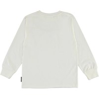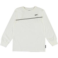 Rasmono er en hvid langærmet bluse med sort skrå piping over brystet, samt Molo logo.