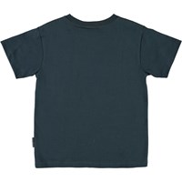 Rasmus er Molo's nye basic t-shirt i mørkeblå med logo print på venstre side. Certificeret af Ecocert Greenlife, certifikationsnr. 197496.