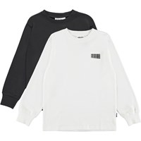 Rasne er Molo's nye uundværlige basic bluse med lange ærmer. Her i en 2-pack med en hvid og sort bluse. Bluserne har rund hals med logo på fronten.