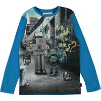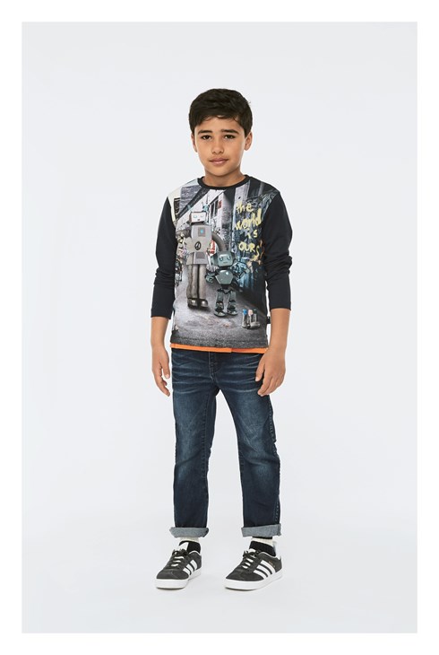 Langærmet jersey t-shirt med placement print på fronten af grafiti malende robotter.