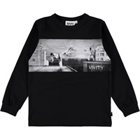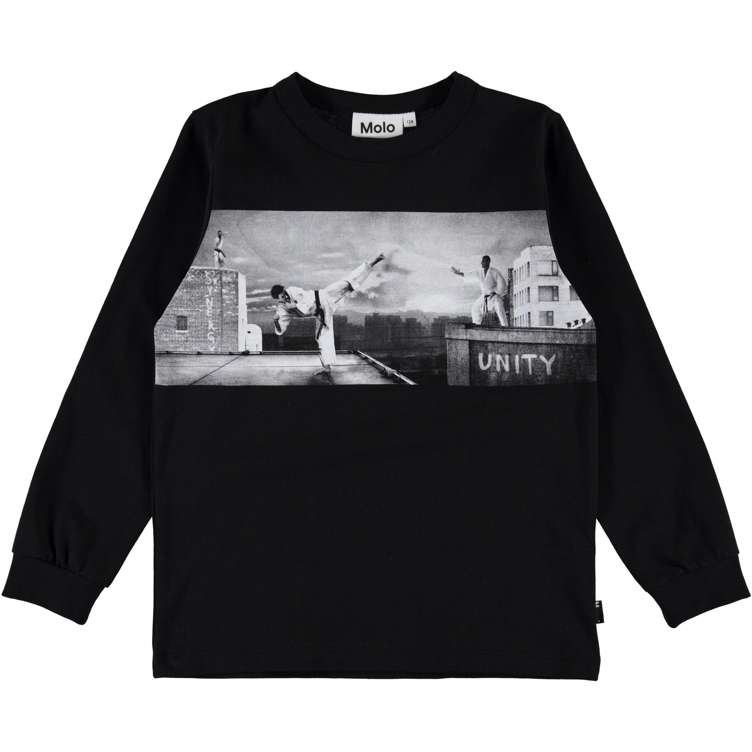 Rez er en sort langærmet t-shirt med karate print på fronten.