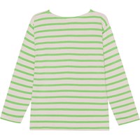 Langærmet bluse med grønne og råhvide breton striber i økologisk bomuld. Blusen har et cool og maritimt look, en almindelig pasform, samt et lille peace broderi i gul på fronten.
