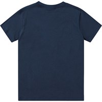 Mørkeblå t-shirt i økologisk bomuld med korte ærmer, rund halsudskæring og ribkant i halsen. T-shirten har en løs pasform og et placeret print på fronten. Printet viser en multifarvet cartoon skærm foran en flimrende skærm og minder dig om vigtigheden af at balancere skærmlivet med den virkelige verden.