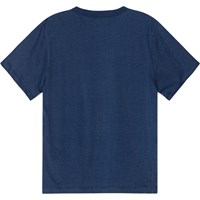 Mørkeblå t-shirt i økologisk bomuld med korte ærmer, rund halsudskæring og ribkant i halsen. T-shirten har en løs pasform og et hvidt print på fronten med teksten "Imagine", halvt pixeleret.